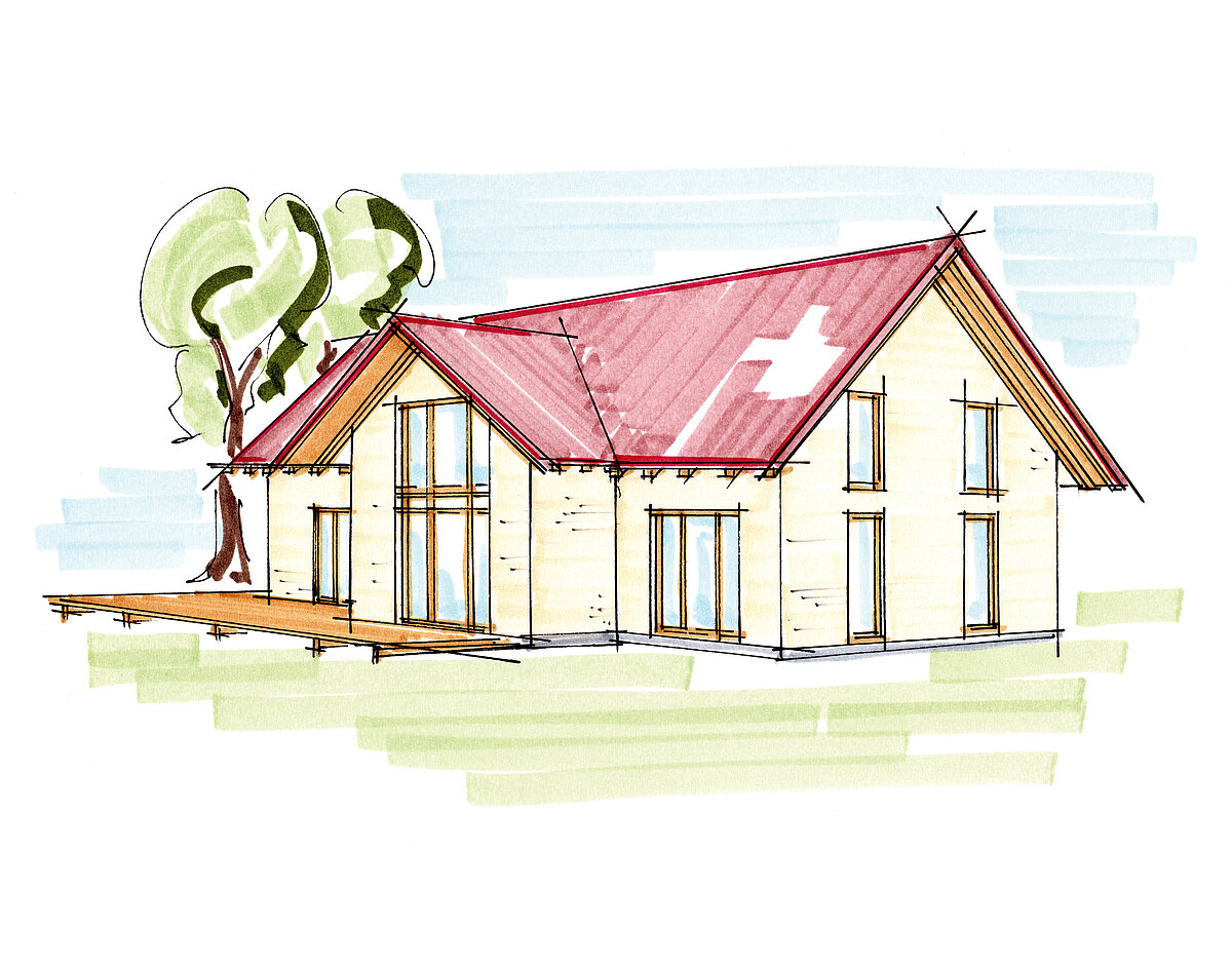 Im ZimmerMeisterHaus „Traum“ wird der Wohntraum Ihrer Familie Wirklichkeit. Durch den Einsatz warmer Fassadenfarben erhält unser Traumhaus eine freundliche und ruhige Ausstrahlung. Die Kombination wohngesunder Baustoffe mit einem materialbewussten Hausentwurf schafft ein hervorragendes Preis-Leistungsverhältnis.